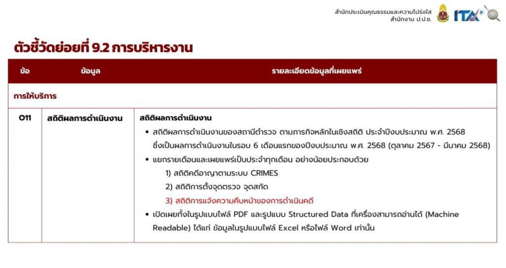 O11 ข้อมูลผลการดำเนินงานเชิงสถิติในการตั้งจุดตรวจ จุดสกัด