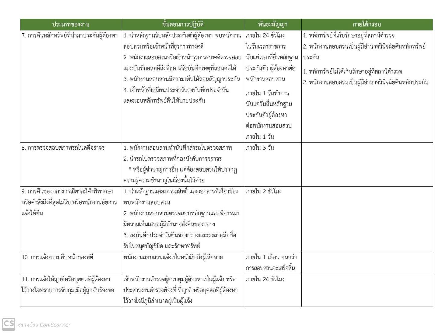 การให้บริการประชาชนของแต่ละสายงานของสถานีตำรวจ