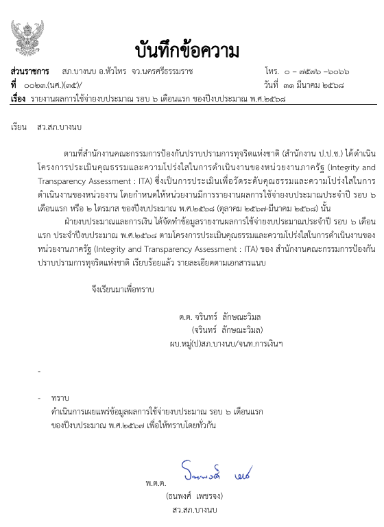 ผลการใช้จ่ายงบประมาณประจำปี 68