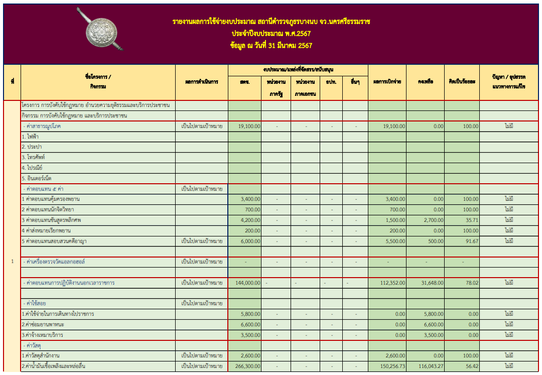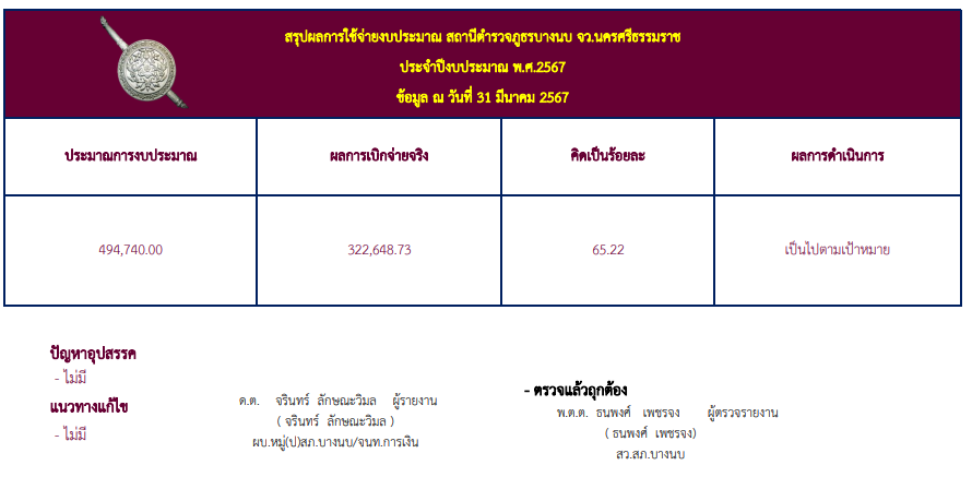 สรุปผลการใช้จ่ายงบประมาณประจำปี 2567